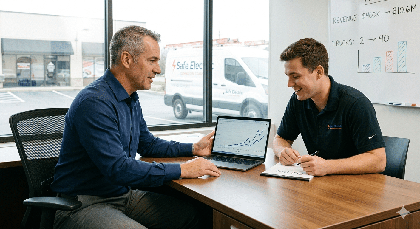 By following a structured growth plan, Matt didn’t just climb out of debt; he built a legacy. He grew Safe Electric from a struggling two-van electrical shop into a multi-trade powerhouse, adding plumbing and HVAC services. His “Big Hairy Audacious Goal” (BHAG) of operating 40 trucks, which once felt like a pipe dream, is now a reality within his grasp thanks to the clarity provided by his trades business coach.